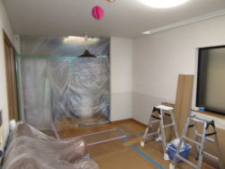 ①お部屋をきれいに養生していきます。