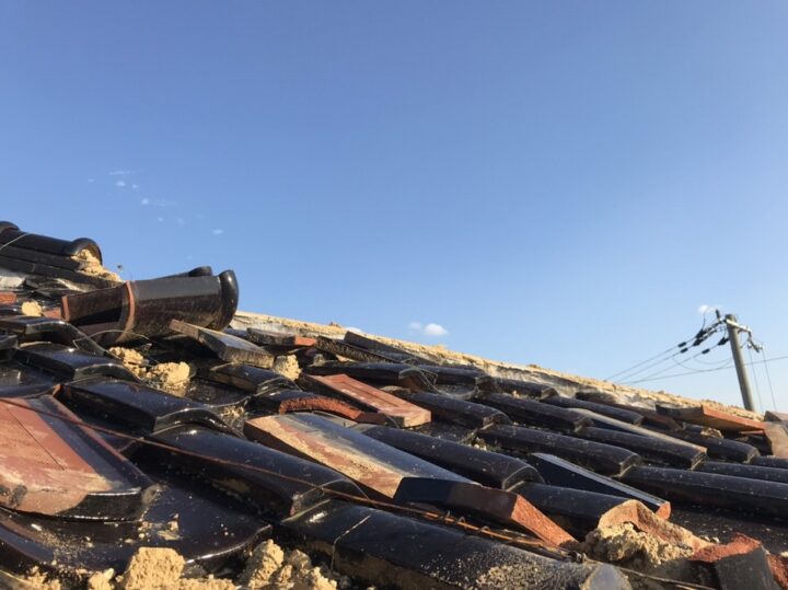 台風後、近所のお家は、屋根にかけてあったブルーシートがどんどん取れて綺麗に家が直っていく様子を見て子供たちが不安そうに「うちはいつ直るの?」