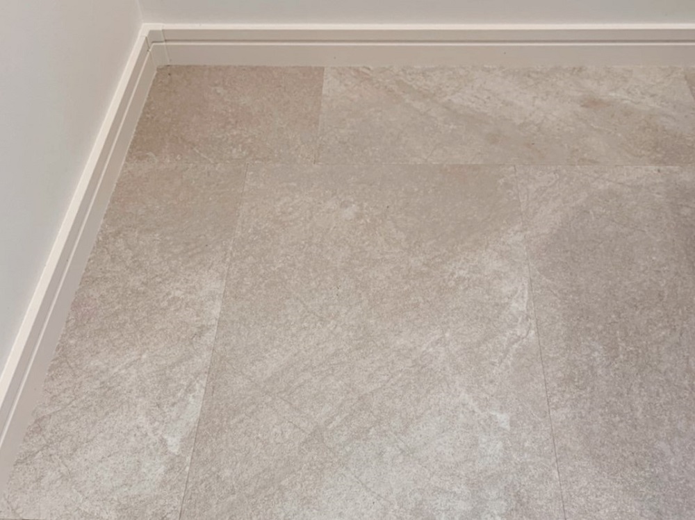 クッションフロアの仕様とは異なり、タイルの質感により、意匠性のある高級感のある仕上がりになりました。