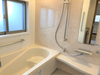 | 使用商材 | LIXIL:リノビオVシリーズ1418サイズ、 アクセントパネル:ポテチーノベージュ 浴槽カラー・エプロンカラー・床カラー:ベージュ |
