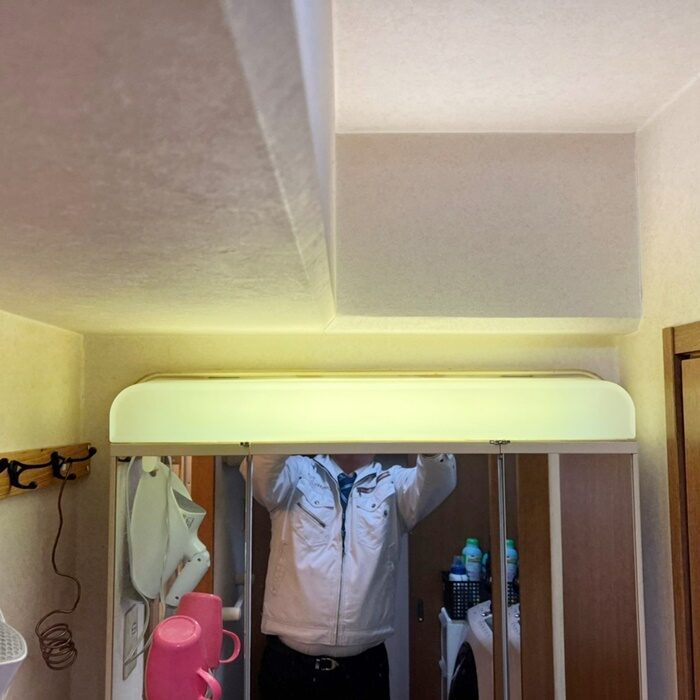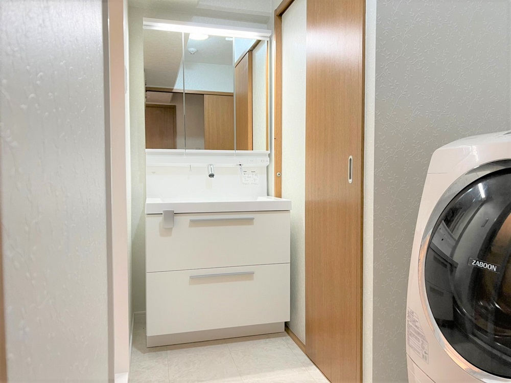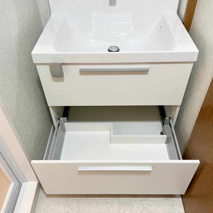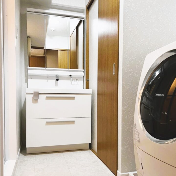 | お客様のご要望 | 浴室のリフォームと合わせて、洗面化粧台と洗面室のリフォームをお願いします。 築26年のマンションため、いろいろな箇所で梁が出ていますが綺麗にはまる洗面化粧台があればご提案をお願いします。 壁紙やクッションフロアはナチュラルな印象のものを希望します。 |