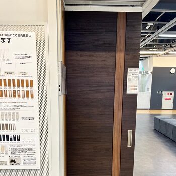 LIXIL南港ショールームを訪れ、ショールームへは代表の菊井、設計の増田、コーディネーターが同行し、マンションの管理組合様の規定の床材の基準を超える数値の床材と、それにあった室内ドアの実物をご覧いただきました。
