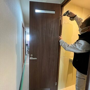 玄関から廊下につながるリビングドアと損傷のひどかったトイレ、洗面脱衣室の室内ドアの交換を行いました。