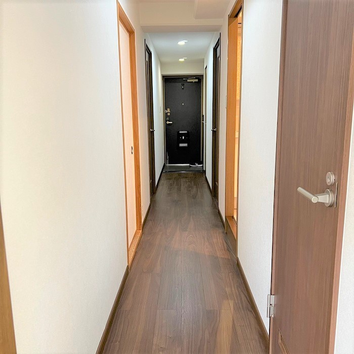 また、廊下に連なる室内ドア4つのうち、今回は3か所のみを交換する為、既存の室内ドアとの色合わせがリフォームを成功させるポイントになりました。