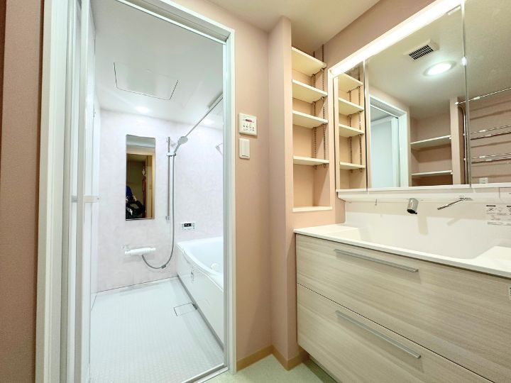 浴室のリフォームもご依頼をいただき、浴室と洗面室を一つの空間と捉えトータルでコーディネートを行いました。