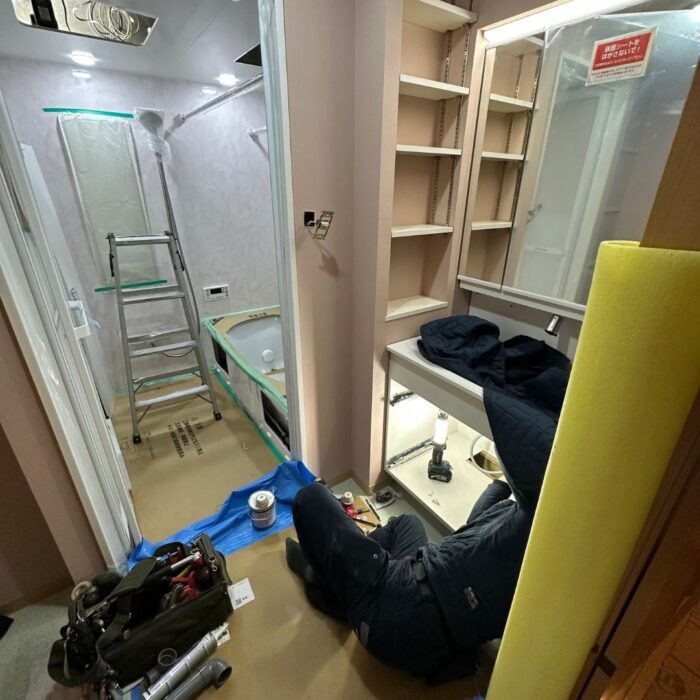 | 施工内容 | 洗面化粧台入れ替えリフォーム・造作収納設置工事 |