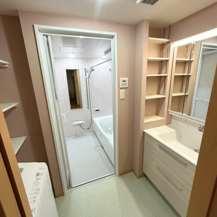 浴室のリフォームもご依頼をいただき、浴室と洗面室を一つの空間と捉えトータルでコーディネートを行いました。