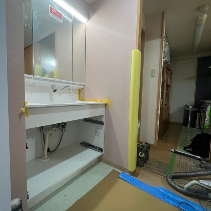 大阪市東住吉区のK様邸の築20年のマンションの洗面化粧台の入れ替え、洗面室リフォームが完成しました。