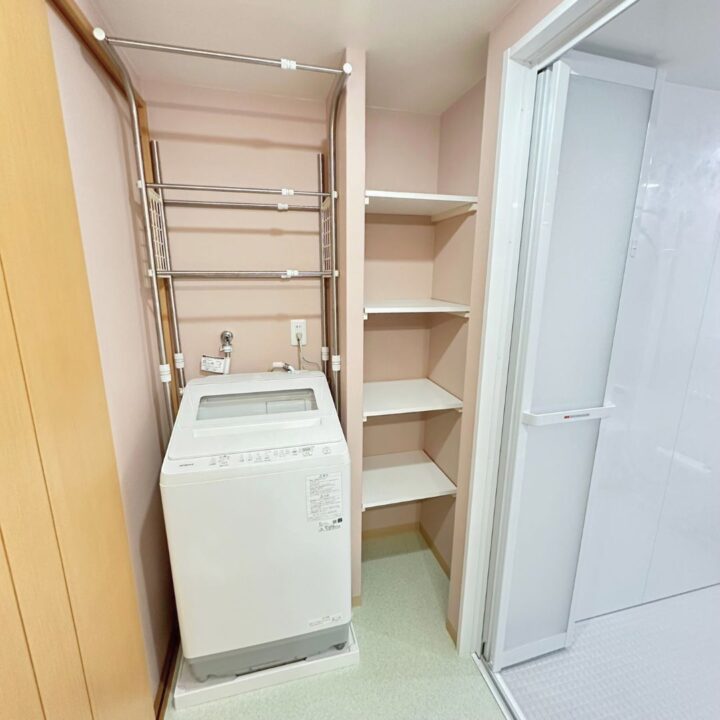 そこで、限られたマンション空間を最大限に活かし、LIXILの洗面化粧台「クレヴィ」の採用と、壁面を有効活用した造作収納棚を設置しました。