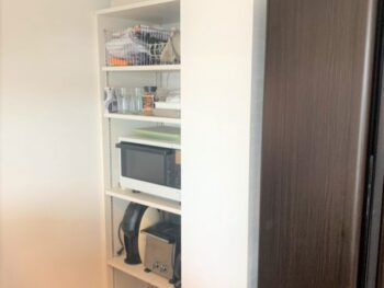 | ご提案内容 | 事前にLINEで可動棚の設置希望か所をお送り頂いていた為、訪問時に即日工事を行うことが出来ました。 設置されたい家電を教えて頂き、奥行きは45センチで作らせて頂くことで、通常2名以上だとキッチンはすれ違うことや、作業がしづらくなる事が多いですが、余裕のある動線となり喜んで頂け大変うれしく思います。 また何かございましたら、お気軽にお問合せください。 |