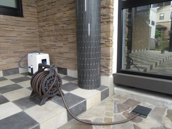 | お客様のご要望 | 新築時に散水栓は取り付けていましたが、水まきや、お庭でのガーデニング、畑での家庭菜園にはやはり立水栓が欲しい!と思いリフォームパークスさんにお願いをしました。 |