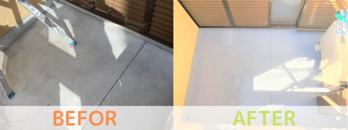 | 施工内容 | ベランダ高圧洗浄・下地調整・シーラー・ベランダ防水塗装工事 |