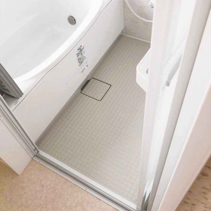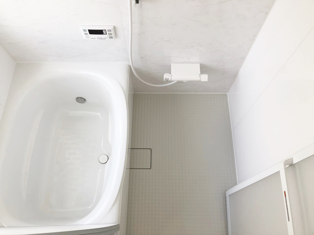 | 使用商材 | LIXIL:システムバス アライズ Cタイプ/アクセントパネル:ホワイトストーン/サーモバス/ミナモ浴槽(ホワイト)/スイッチ付エコアクアシャワー(ホワイト) |