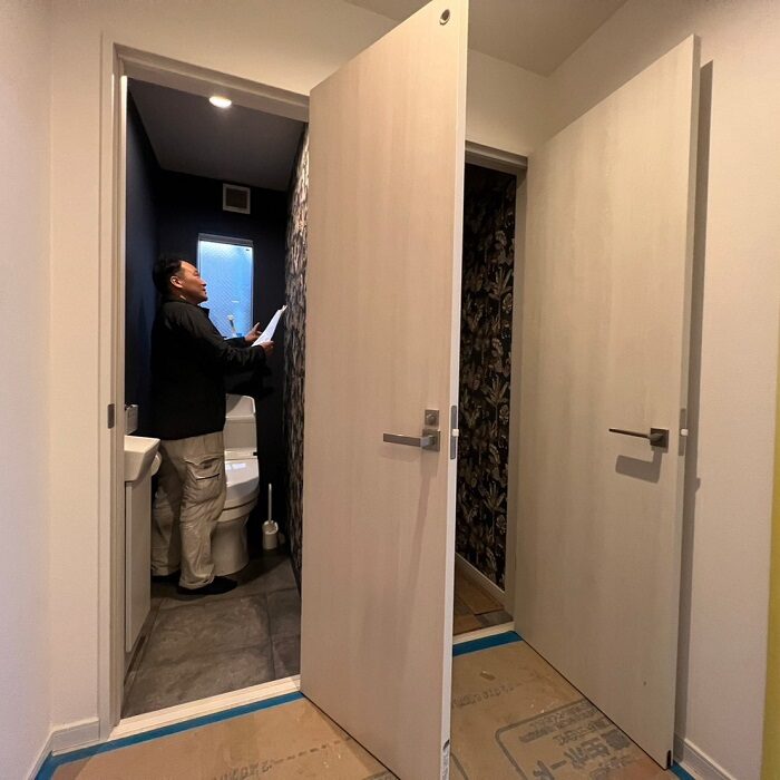 | お客様のご要望 | 1階のスペースでサロンを開業したいと考えています。 こちらのトイレをお客様に使って頂く予定です。 家全体のインテリアイメージを大事にしつつ、遊び心があるおしゃれなトイレにしたいです。 |