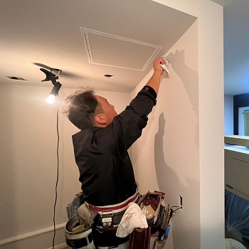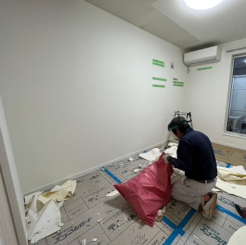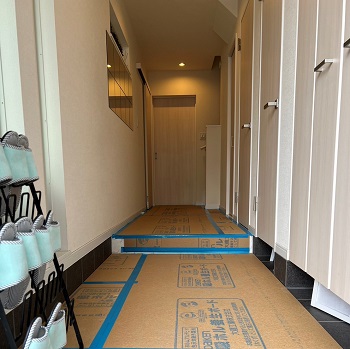 既存の建物を傷をつけないよう、丁寧に養生作業を施していきます。