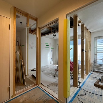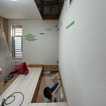I様に現場の写真をお送りしたところ、「自分の家じゃないみたい!」とリフォーム工事が進んでいく姿に喜びと驚きの返信がありました。