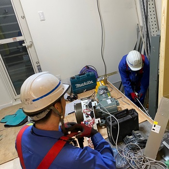 安全第一、複数人の専門技術者によって設置工事を行いました。