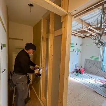3階部分を洗面・浴室スペースとファミリークローゼットスペースに仕切っていきます。