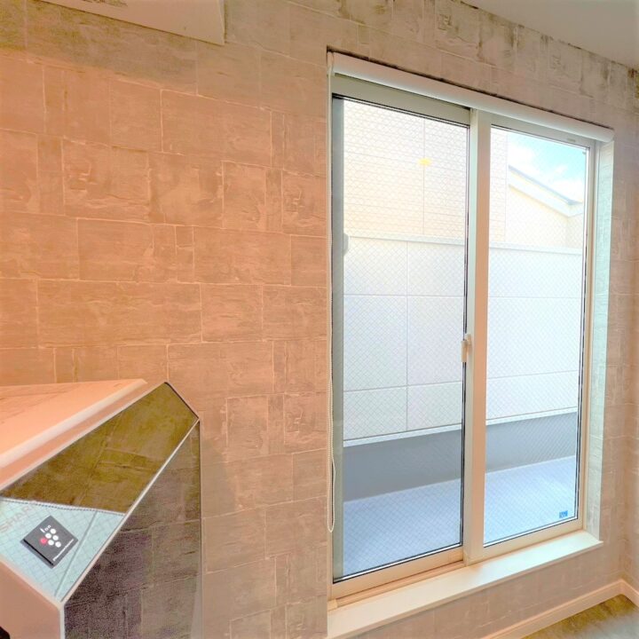 既存の掃き出し窓を浴室側に取り入れ、間仕切り壁を造りました。洗濯物、ベランダのお手入れなど家事動線の設計も細かく計算しプランをたてました。