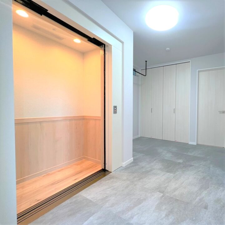 【3階ホール】エレベータ―はPanasonicのホームエレベーターを採用しました。