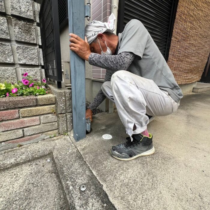 古い門扉の取り外しから基礎工事、機能門柱の正確な水平・垂直調整まで、熟練の職人が細部までこだわり施工を行いました。