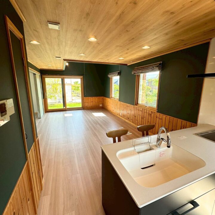 【戸建てリフォーム】ダークグリーン×木目柄で深みと統一感を生み出す壁紙・床材貼り替えリフォーム大阪府 H様邸