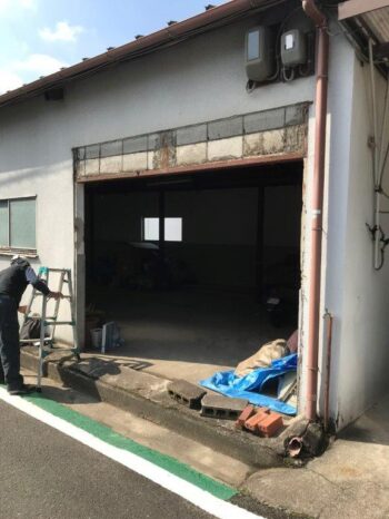 | 施工内容 | 台風被害リフォーム・倉庫(ガレージ)リフォーム工事、コンクリート土間ハツリ |