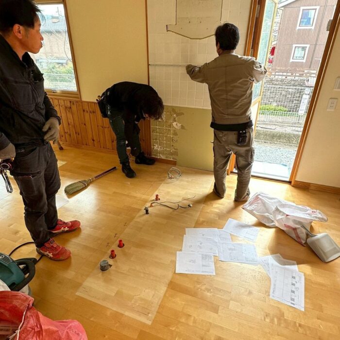 代表の菊井、施工を担当する永野、大工・設備担当の4名にて現地調査を行いました。